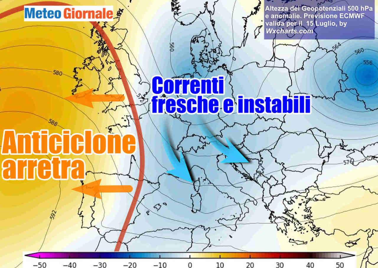Ci sarà così tempo a tratti avverso soprattutto al Nord-Est e parte dei versanti adriatici, con frequenti temporali anche di forte intensità. Le temperature caleranno ulteriormente, portandosi sotto media e su valori tutt’altro che consoni alla piena estate.