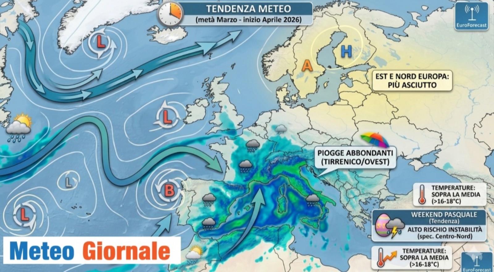 La zona interessata dai fenomeni è piuttosto ampia e va dall’Andalusia al sud della Francia, prendendo in pieno l’Italia, l’Adriatico e pure una parte del nord Africa. Insomma, la primavera 2026 si preannuncia piuttosto gradevole dal punto di vista termico, ma decisamente movimentata e con l’ombrello spesso a portata di mano.