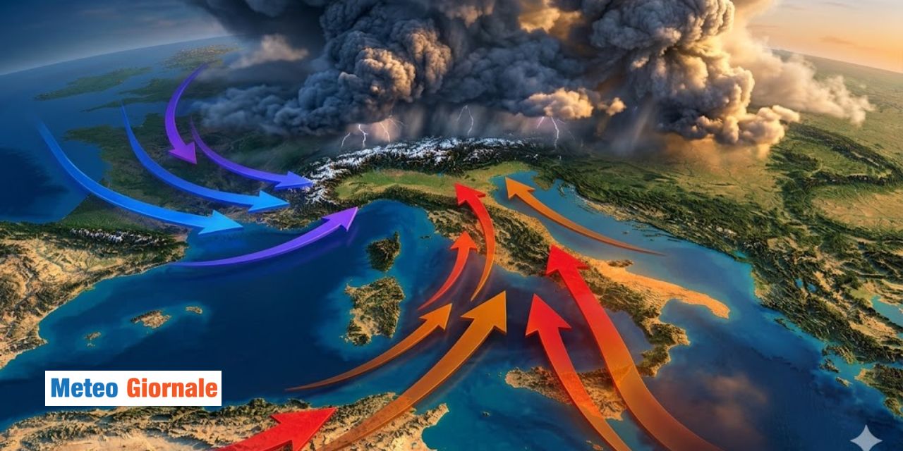 Il calo delle temperature non è tuttavia il rischio maggiore. Come sempre accade in questi casi, il vero pericolo è l’innesco di fenomenologia estrema. L’Anticiclone Africano fungerà da immenso serbatoio, accumulando enormi quantità di calore e umidità nei bassi strati dell’atmosfera.