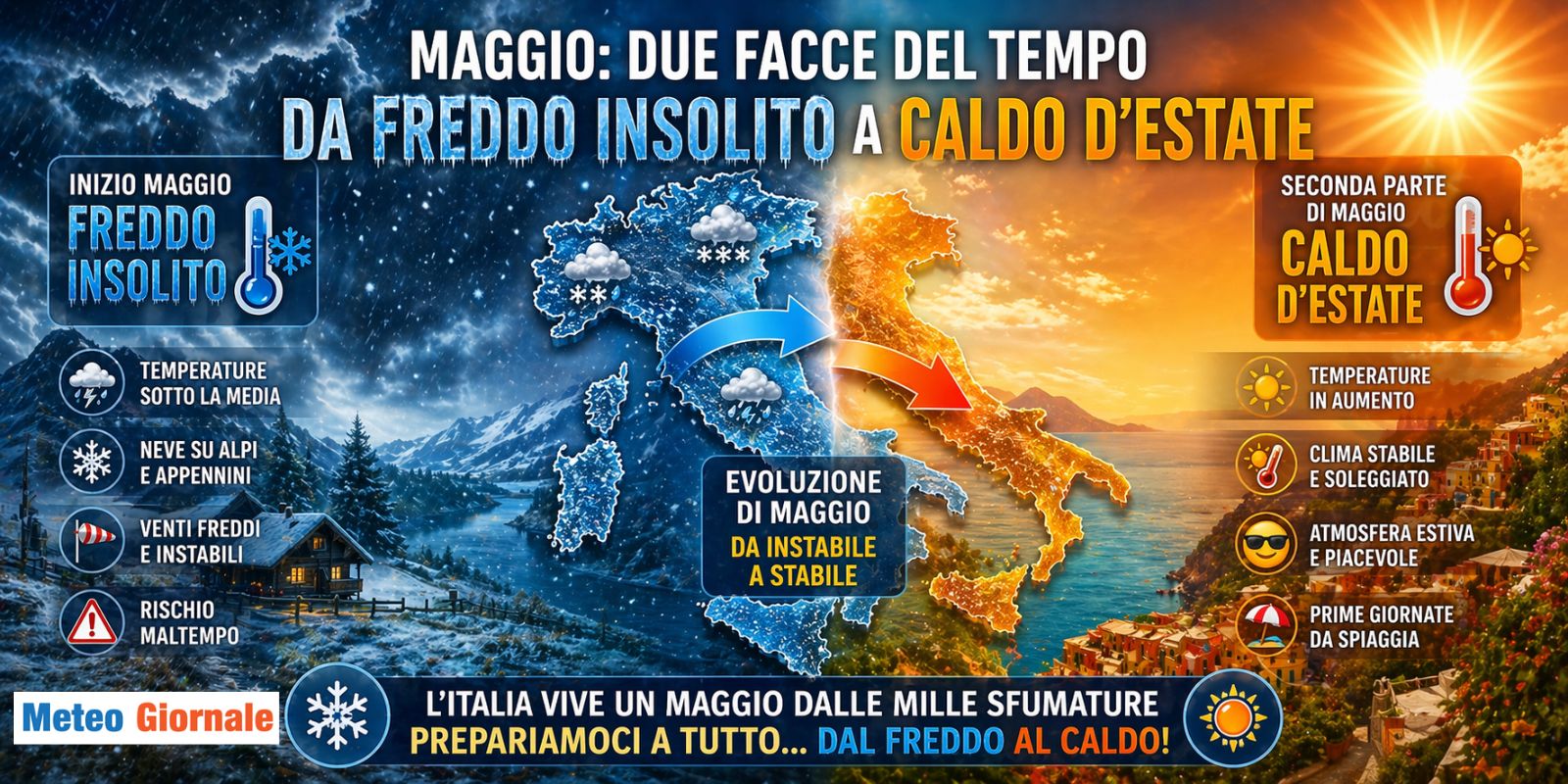 (METEOGIORNALE.IT) Nelle ultime settimane abbiamo presentato le varie novità inerenti le proiezioni mensili di Maggio. Novità orientate in direzione del caldo, verso quel cambiamento meteo climatico dettato dal passaggio da La Nina a El Nino. E’ vero, probabilmente gli effetti di tale variazione si percepiranno maggiormente durante l’Estate 2026, ma le avvisaglie ci sono già