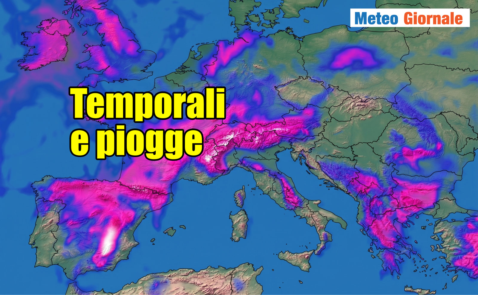 In una visione d’insieme, si nota che le Isole Britanniche sono piuttosto esposte alle perturbazioni da ovest, ma altrettanto esposta è la penisola iberica, comprese le sue aree montuose. In Italia risulteranno coinvolte le Alpi, soprattutto quelle occidentali, e anche l’Appennino. Altrove le precipitazioni saranno meno rilevanti, però si notino i colori più scuri del blu sempre a ridosso dei rilievi: indice di precipitazioni spesso orografiche, in parte derivanti anche dai temporali pomeridiani. Sull’Italia, infatti, più che vere perturbazioni ben organizzate, nei prossimi 15 giorni giungeranno aree di instabilità atmosferica, situazioni dovute anche a contrasti termici e quindi con precipitazioni soprattutto a carattere temporalesco, dunque per lo più sparse.