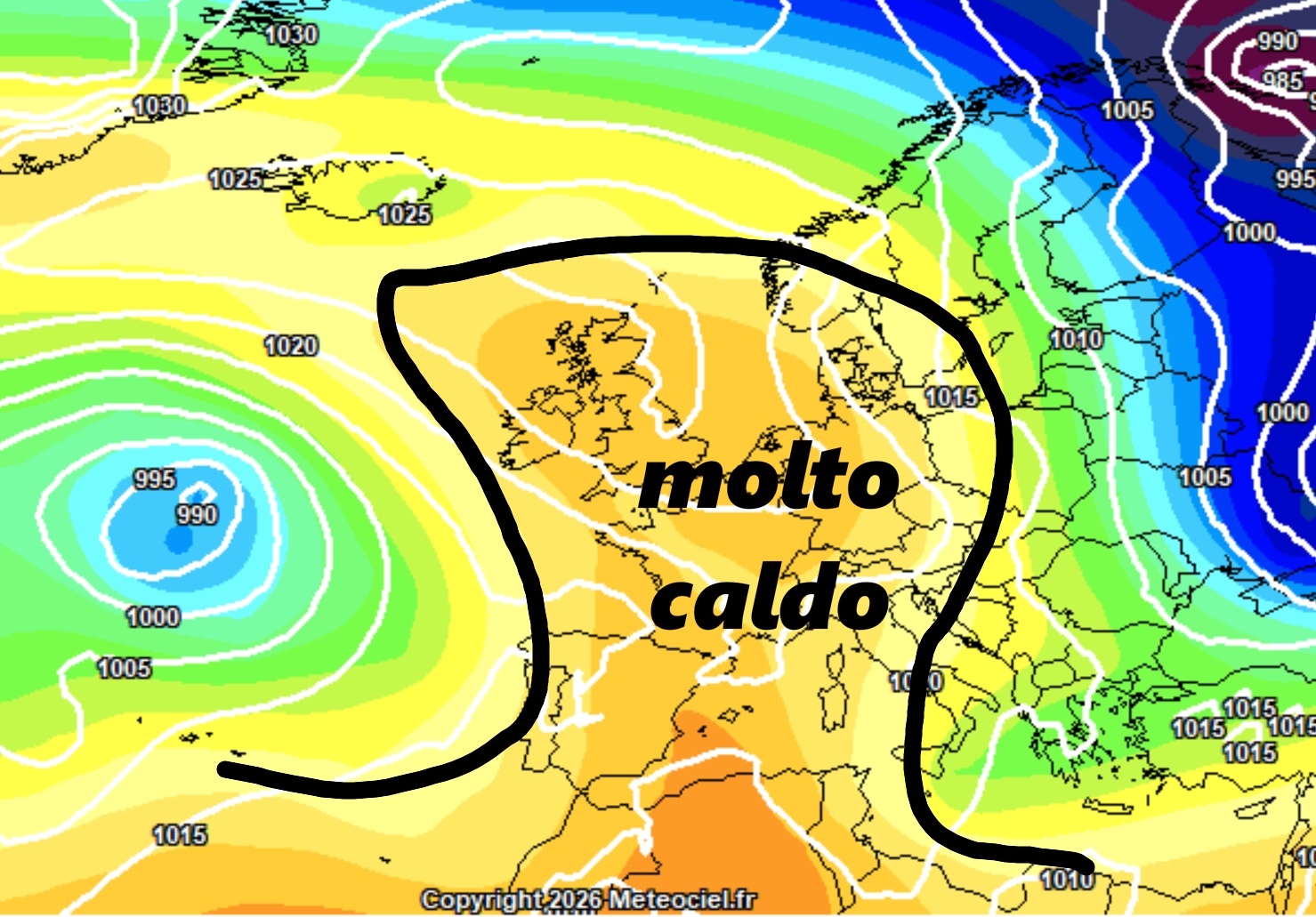 Sarà una parentesi piuttosto breve. Dopo questo picco anomalo, lo scudo di alta pressione inizierà a cedere, migrando lentamente verso nord-ovest. Questo spostamento aprirà un varco, permettendo a correnti decisamente più fresche e instabili di raggiungere la nostra Penisola. UKMO e ECMWF vedono un nocciolo freddo sorvolare le Alpi.