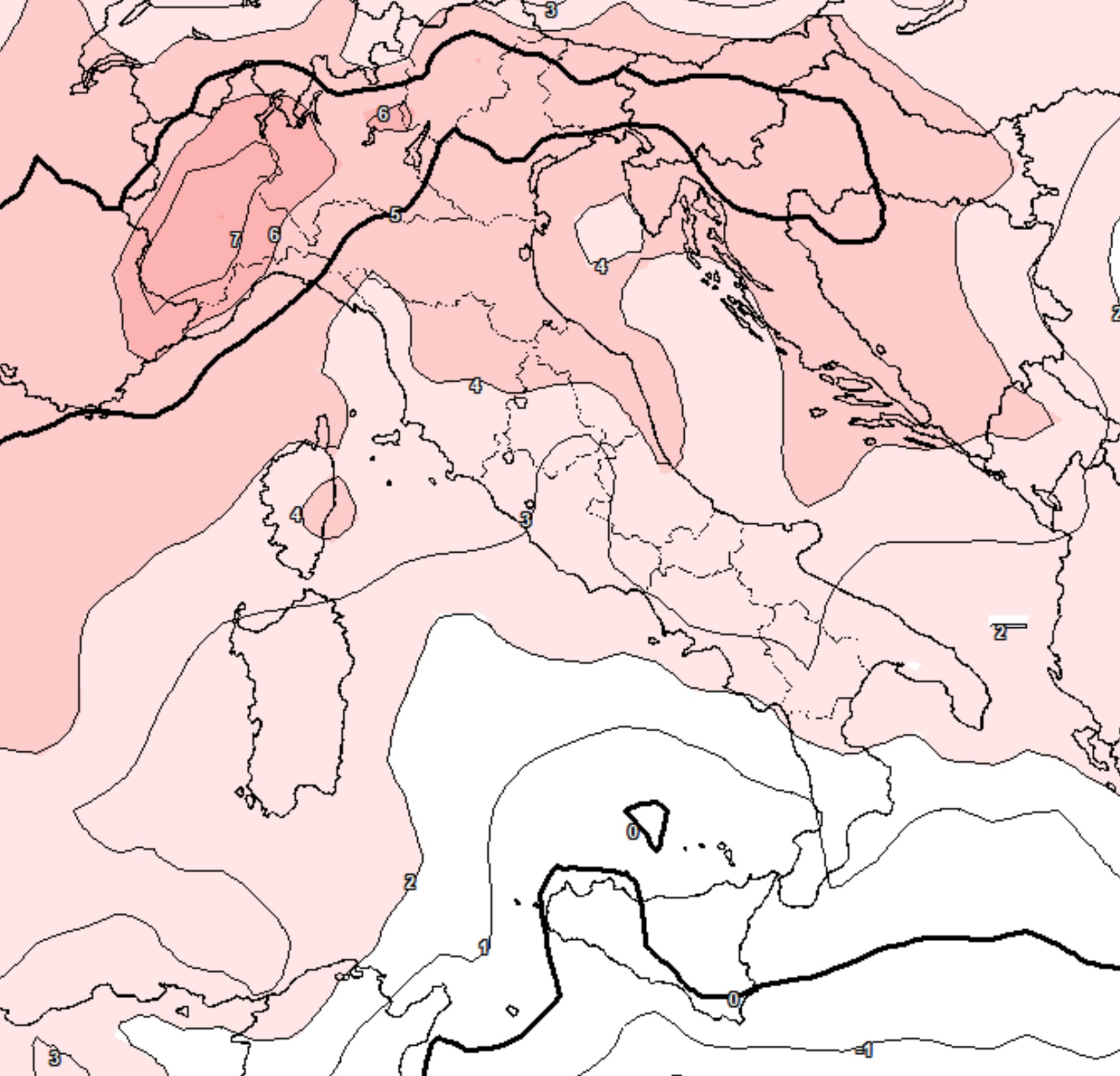 Le zone invece meno colpite saranno (paradossalmente!) l’entroterra della Sicilia e il basso versante tirrenico, aree dove si registreranno valori compresi tra i 23 e i 25°C. Temperature comunque al di sopra delle medie di riferimento, ma non eccezionali come altrove.