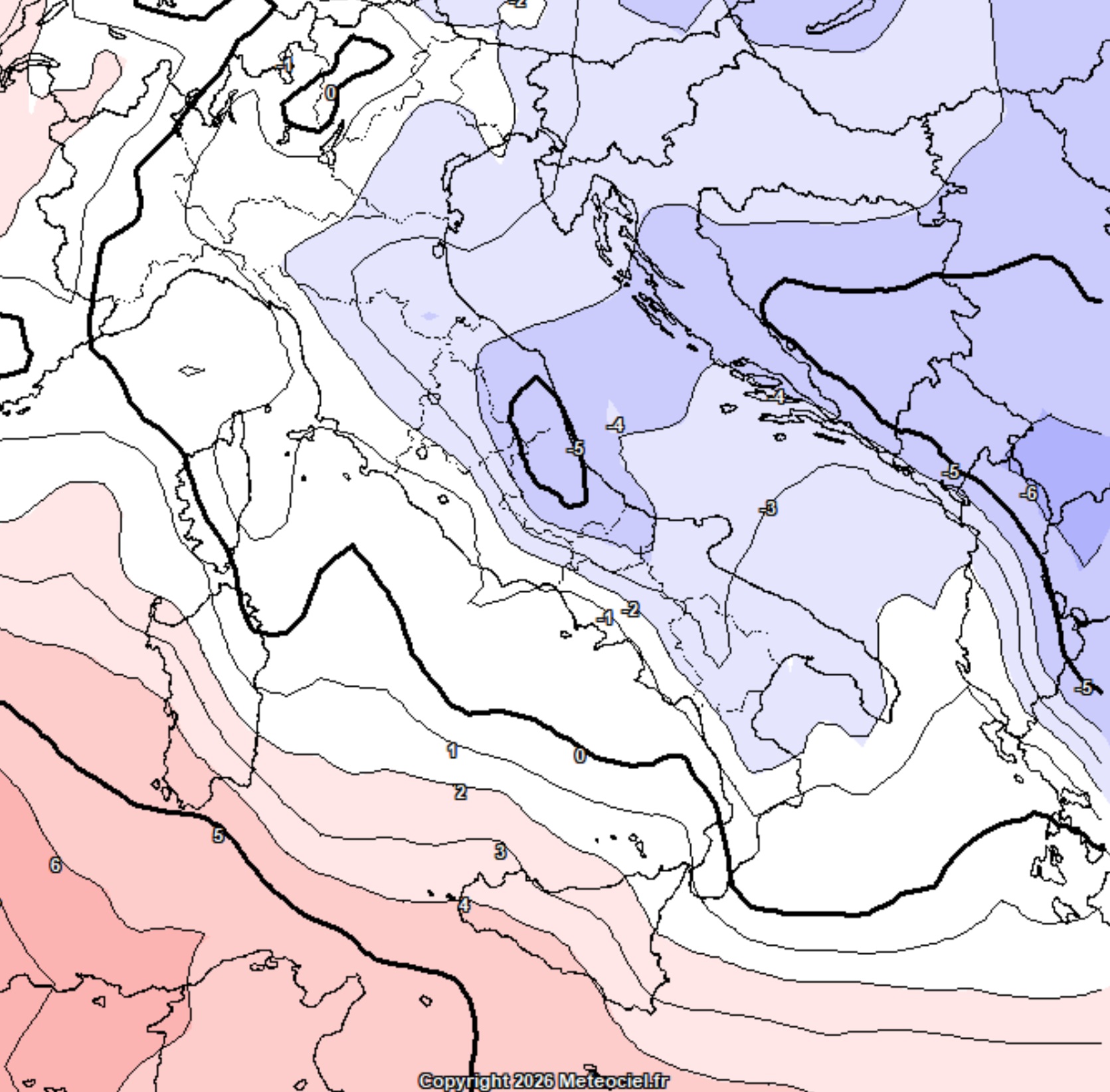 Decisamente poco. Questo perché il nucleo di aria fredda continuerà successivamente il suo moto verso il meridione. Come certificato dalle mappe e dalle elaborazioni grafiche di ECMWF e GFS, nel corso della notte su Giovedì 23 ci sarà l’apice assoluto del freddo sulle zone adriatiche.