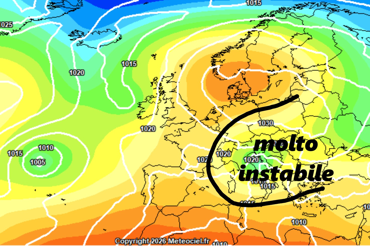 Rispetto agli aggiornamenti di qualche giorno fa, registriamo una virata significativa. Se inizialmente i modelli suggerivano che il freddo ci fosse piombato addosso all’impazzata, con le nuove tendenze meteo emerge che il nocciolo gelido potrebbe passare un pelo al di sopra delle Alpi. Questo però comporterebbe lo stesso una decisa instabilizzazione della colonna d’aria.