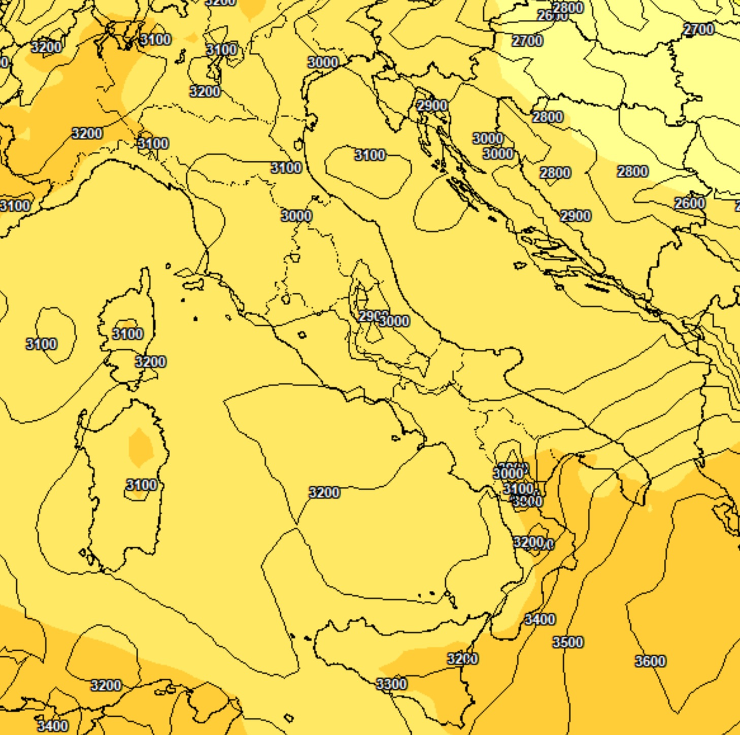 Basti pensare che anche al Nord-Ovest i valori superano i 3200-3300, un valore tipico di giugno, e tutta Italia è over 3000. È doveroso sottolineare che, differenza di quanto è accaduto in altre occasioni ad esempio nel cuore di dicembre, valori simili in questo periodo dell’anno non sono così eccezionali. Risultano comunque un po’ al di sopra delle medie, ma senza paventare record assoluti, tutt’altro.