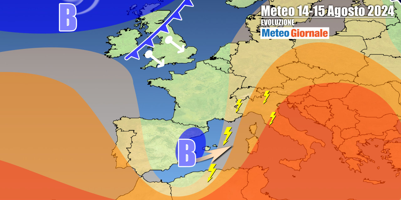 A vortex, filled with cool air, will intrude into the Mediterranean near the Balearic Islands, but will not significantly affect Italy until Ferragosto, apart from a certain increase in convective instability. Sardinia and the westernmost regions will be marginally affected by this cold drop from the west, which by the end of the week should advance more decisively eastwards. The Mediterranean vortex will be hooked by an Atlantic front, with worsening weather expected over the weekend starting from Northern Italy where more widespread thunderstorms will be observed. The disturbed impulse will be followed by cooler air, which should temper the heat first in the Center-North and then partly also in the South by Sunday, August 18.