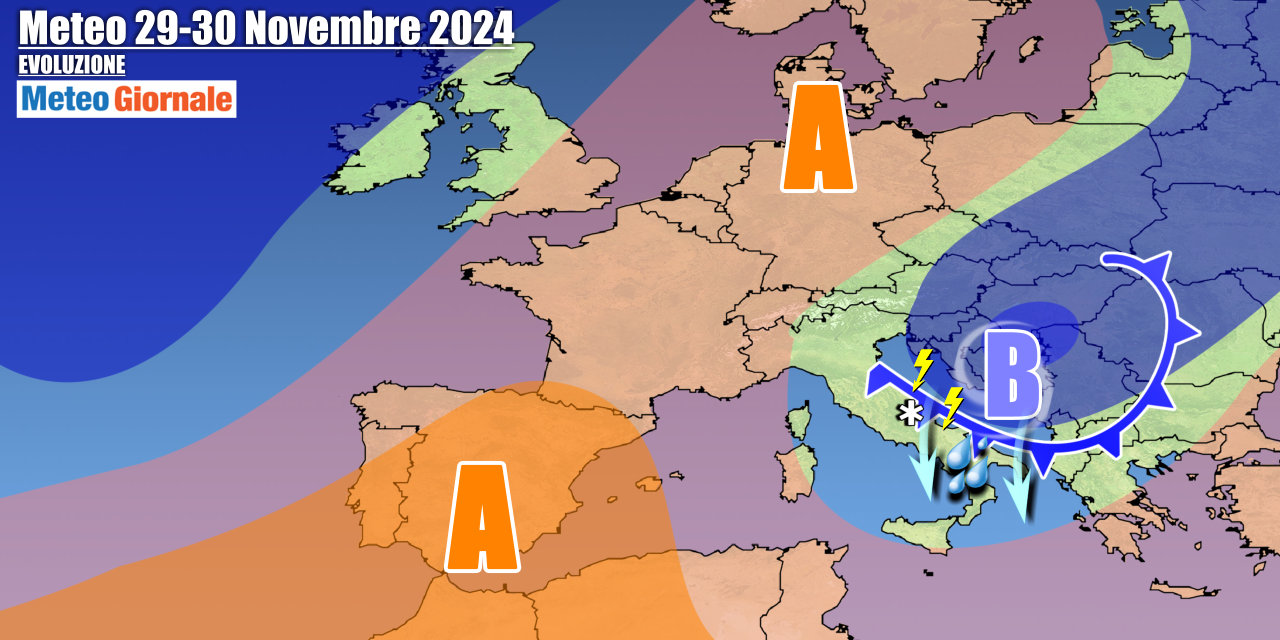 In Italy, from the west, the anticyclone will begin to press, but it will still be a context of winter cold everywhere with lingering instability in parts of the South. Starting from Tuesday, December 3, Northern Italy could experience a return of milder Atlantic currents.